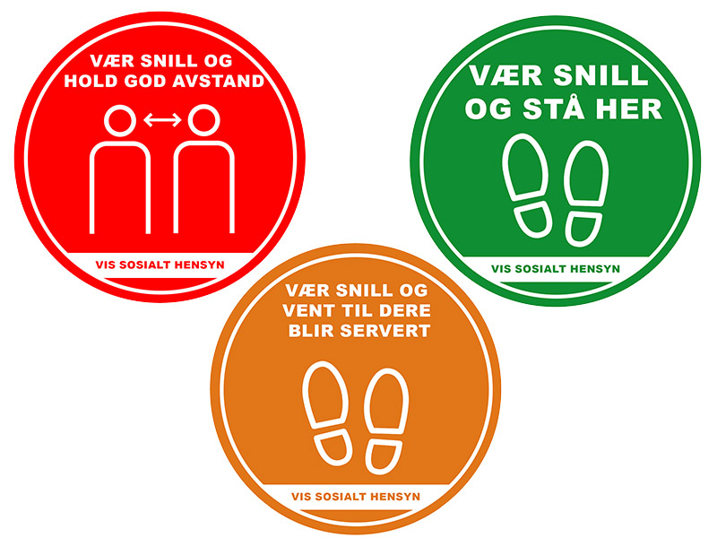 Vi kan nå bistå stat, kommune og private bedrifter med skilting og merking i denne spesielle tiden. Se vårt nye utvalg av HOLD AVSTAND PRODUKTER her. Velg blant standard produktene våre eller sett opp design og formål for deres informasjon. Vi kan levere egendesignede produkter med deres farger, logo og ønsket tekst, eller gjør det enkelt og velg blant våre produkter her. Vi kan bistå med å printe skilt til utvendig og innvendig bruk. Skiltene kan enkelt monteres direkte på vegg ved å skru skiltene til bakgrunn. Eller de kan leveres med oppheng og avstandsstykker. For gulvmerking kan vi også levere selvklebende, laminert folie som festes på glatte, rene underlag. Tiden er spesiell men forholdsregler vil alltid være aktuelle. Kontakt oss for en hyggelig prat eller send oss en mail med deres forespørsel.