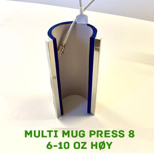MULTI MUG koppepresse er en brukervennlig presse å jobbe med. Den er enkel å betjene med et oversiktlig display. I tillegg har pressen en timer som teller ned til riktig tid i produksjon. Dette gjør jobben enklere da man kan gjøre flere ting på en gang. Når maskinen jobber kan dere plassere motivene på koppene å forberede neste kopp for produksjon. Slik jobber man strømlinjeformet og effektivt. Med volum i trykk vil vi anbefale flere koppe presser for effektivitet i produksjon. Her er det også å vurdere en TMT 4xkopp- eller 5xkopp-presser.