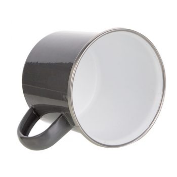 Sjekk våre nye tøffe emaljekopper i mørk grå utførelse. Dette er årets kopp for den motebevisste. Koppene passer perfekt til interiør, hytte og gutta. Skal man gi en hyggelig gaveartikkel vil en eller flere sublimerte kopper med personlig hilsen, være den perfekte gaven. Ved sublimeringstrykk på fargede kopper anbefaler vi sort trykk for korrekt gjengivelse av grafikken og teksten. Kan også trykkes med logo. Det kan forekomme variable fargenyanser fra parti til parti på fargede kopper. Slik blir koppene levert fra leverandør. Koppen er lett og anvendelig og tåler røff behandling. Produktet vil om mulig ha enda mer verdi jo mer slitt og brukt den ser ut. Sånn skal denne koppen være. Men unngå støt mot koppene. Emaljekoppene er ikke 100% rett eller slett. Den fremstår rustikk. For lengre levetid på produktet anbefales håndvask.