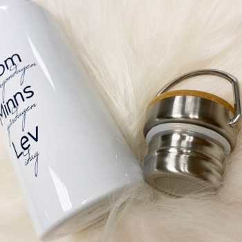 Årets nyhet på drikkeflaske fronten. Vær miljøvennlig, unngå plast og velg praktiske drikkeflasker i metall. Trykket går inn i flaskens belegg og ligger beskyttet mot slitasje. Flasken holder meget godt på både varm og kald drikke. Flaskene har et kult tidsriktig design. Med håndtaket på lokket kan flaskene bæres med overalt. Flasken kan puttes i oppvaskmaskinen. Dette er den perfekte gaven. Flaskene er også en fin salgsartikkel i event-sammenheng, i butikken, i dugnadssalg og til arrangementer. Her har dere en drikkeflaske som skiller seg ut fra mengden med plastflasker. Elegant pen og praktisk på en gang.