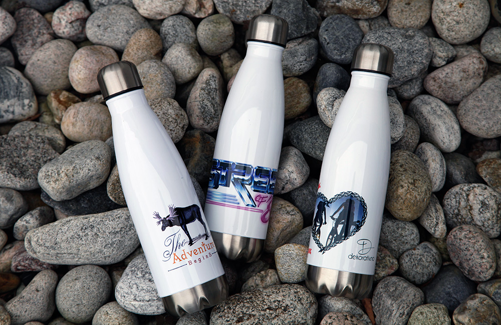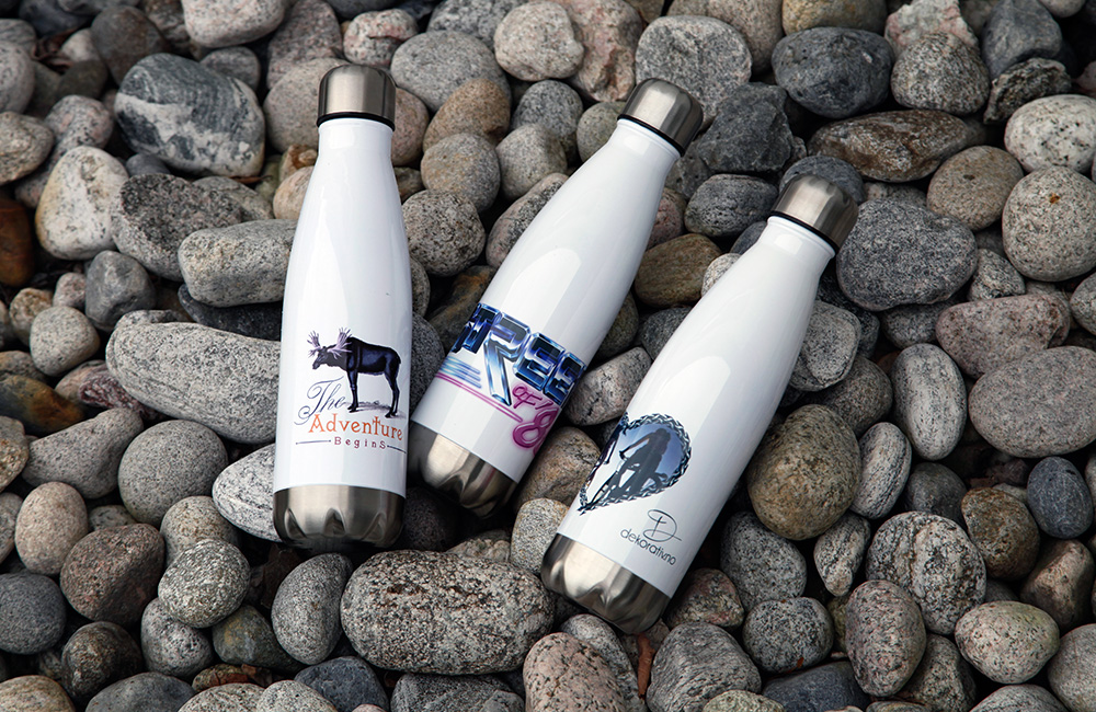 Vær miljøvennlig, unngå plast og velg praktiske drikkeflasker i metall. Dette er vår mestselgende drikkeflaske. Flasken har et tidsriktig design. Profiler deres flasker med kundelogo, emblem, tekst, grafikk, foto, kunst eller bilder. Flaskene tåler oppvaskmaskin, men vi anbefaler håndvask for lenger levetid. Drikkeflaske i metall er perfekt til foreninger, klubber, som dugnadsartikkel, gave artikkel og for salg i butikkene. Se også drikkeflasker med samme design i glitter gull og sølv utførelse. Alle flaskene er produsert til formålet sublimeringstrykk. Drikkeflasken ivaretar 5dl drikke. Like egnet til varm som kald drikke. Flasken holder godt på temperaturen.