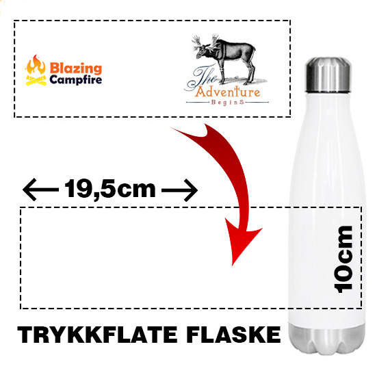 - Følg våre anbefalte maler for maks trykk-flate på flasker og kopper som ligger på vår hjemmeside ved hvert produkt