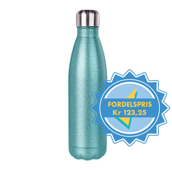 Se vår nye eksklusive og glam glitter flaske serie. Nå har vi også fått turkis glitter flaske til lager. Hva er ikke hyggeligere enn å skinne på trening? Flaskene passer perfekt til både barn og voksne. Dette er en optimale artikkelen å gi i en gavesammenheng. Trykk logo, grafikk, variable navn og tekst på flaskene med sublimeringstrykk. Trykket tåler mye og flasken er i robust metall. Flasken har samme elegante form som vår mest populære flaske i hvit utførelse. Flasken rommer 500ml, og holder meget godt temperaturen på kald og varm drikke. Velkommen til glitter i kombinasjon med sublimeringstrykk. En spennende kombinasjon.