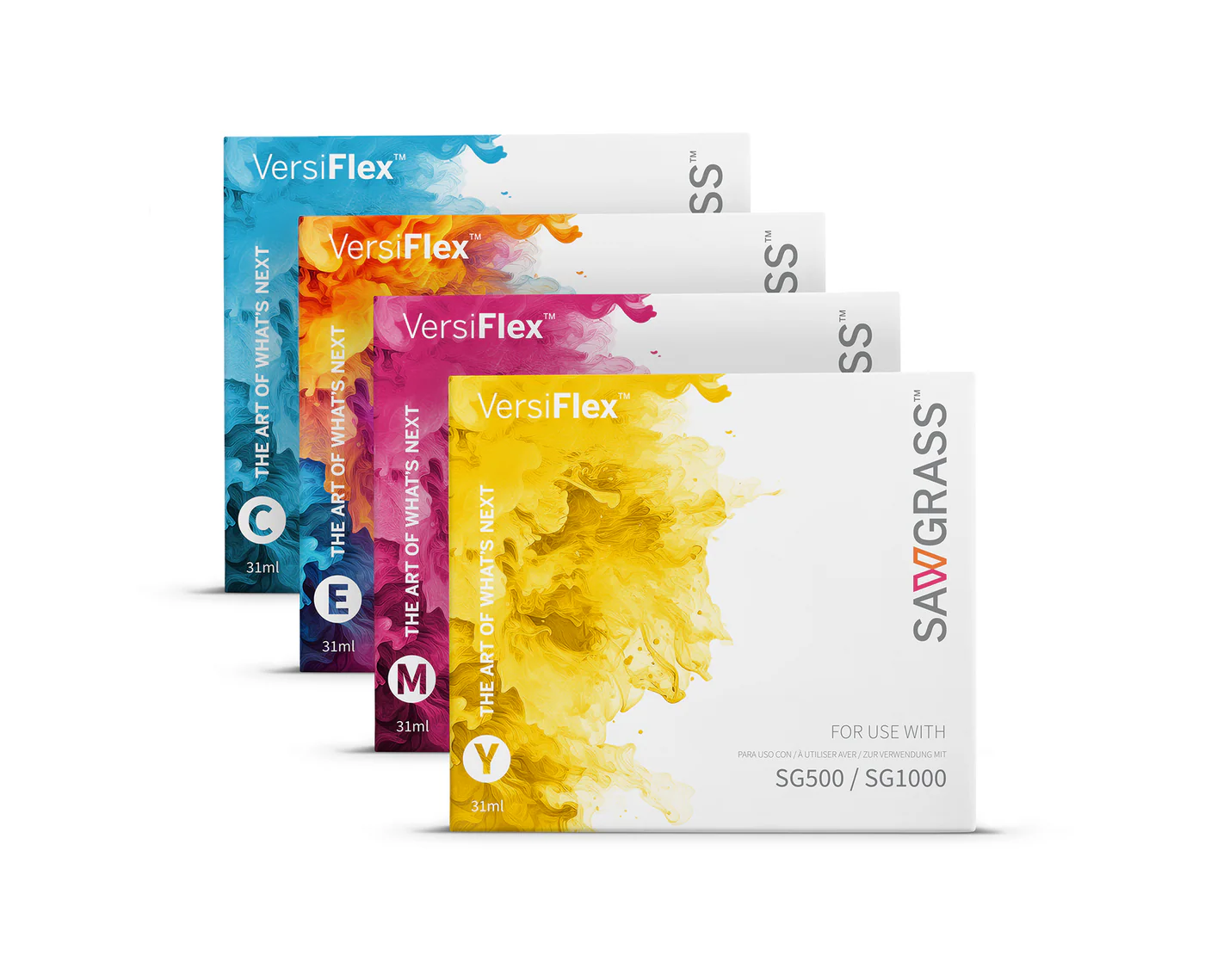 VersiFlex er kun kompatibelt med SG500/1000 som er satt opp til VersiFlex-systemer. Hvert VersiFlex-blekksett inneholder fire nødvendige farger: cyan, magenta, gul og expander (fargefri blekk).