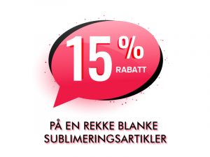 15% avslag på en rekke smarte artikler egnet til sublimeringstrykk