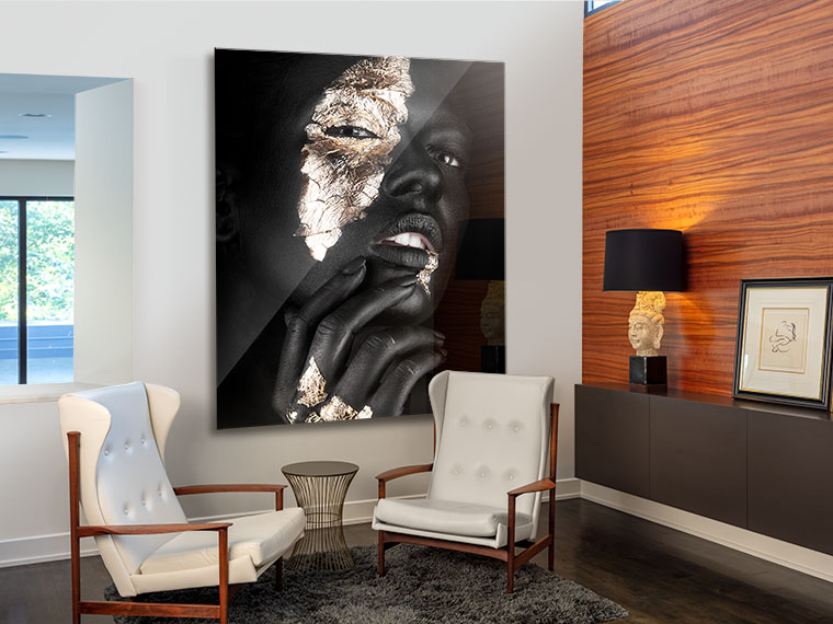 Denne aluminiumsplaten har et gjennomsiktig belegg slik at metallet skinner i gjennom. Dette fungerer meget bra til bilder med høy kontrast. Metall bakgrunnen gir også en kul effekt til sort/hvitt bilder.