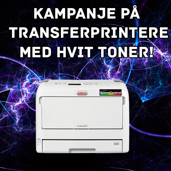 SpaceControl er en essensiell del av produktet for å få korrekt farge gjengivelse og toner kontroll. Med hvit lasertoner åpner det opp mange dører for fullfarge transfer trykk på det meste. Trykkene overføres i en varmepresse. Uansett farge på produktene, type tekstiler eller materialet du trykker, er det ubetydelig med en OKI hvit toner printer. Produser også vanndecal, midlertidige tatoveringer og klistremerker med hvit print om ønskelig.