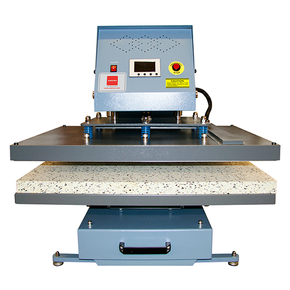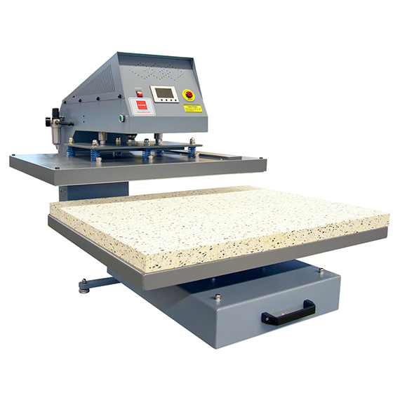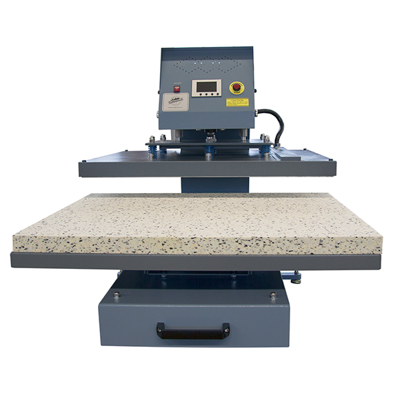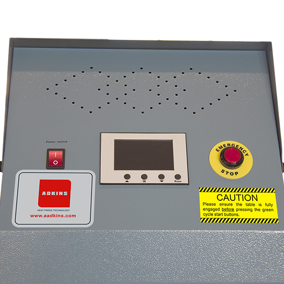 En høy kvalitets varmepresse med støpt aluminiumsramme produsert i England. Varmepressen har en uttrekkbar plate som gir deg god sikt og enkel tilgang til det du skal trykke på. Utstyrt med avansert datastyrt LED-kontroller for nøyaktig innstilling av både tid og temperatur. Trykkjustering er lett tilgjengelig oppe på varmepressen.
