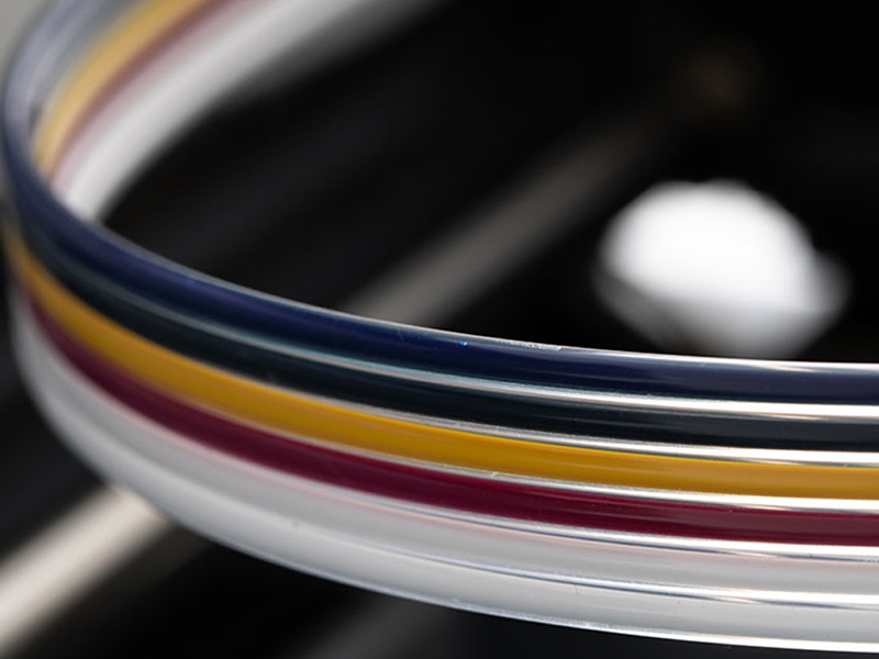 Ri 1000 støtter CMYK pluss hvitt blekk, slik at du uavhengig av tekstilfargen kan lage flotte trykk i oppsiktsvekkende farger ved å skrive ut på et hvitt underlag alt etter behov