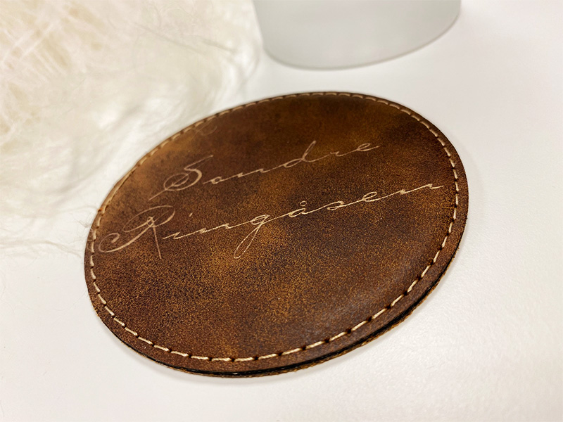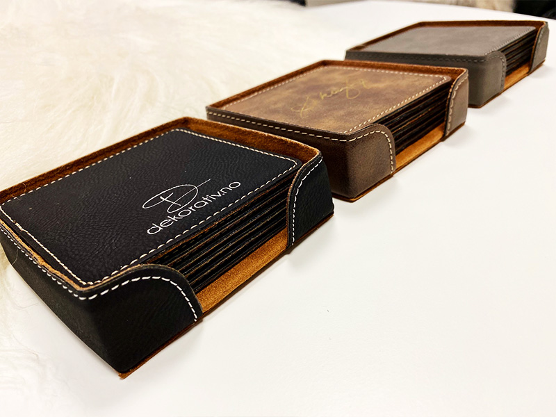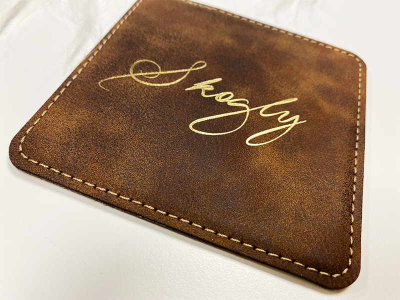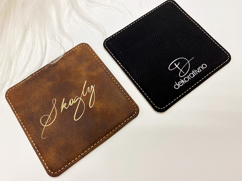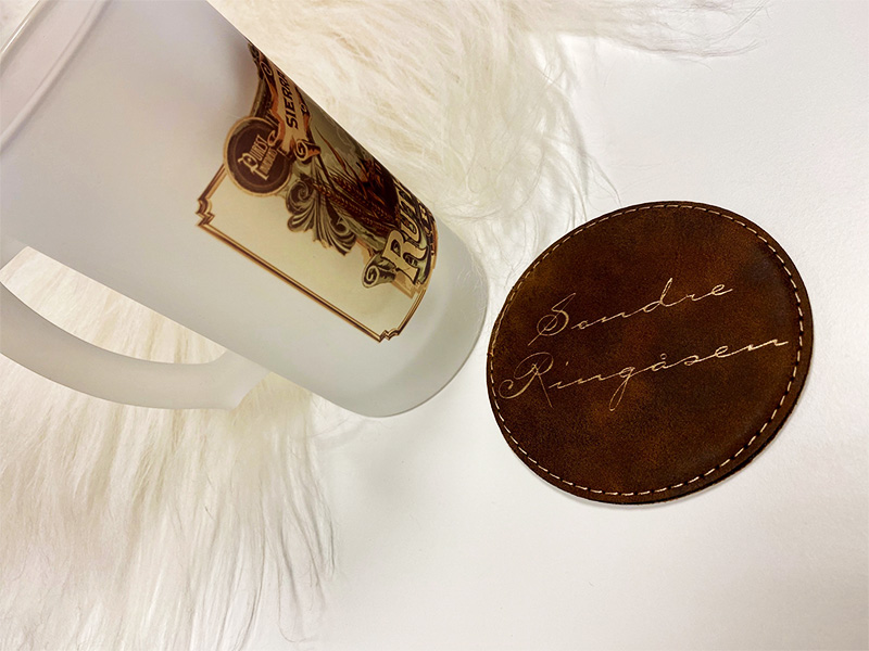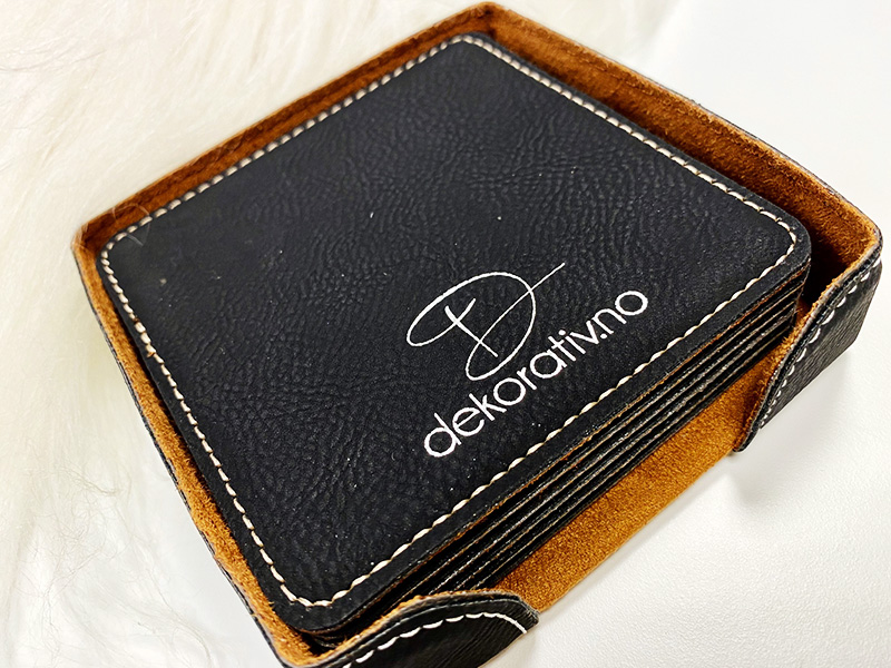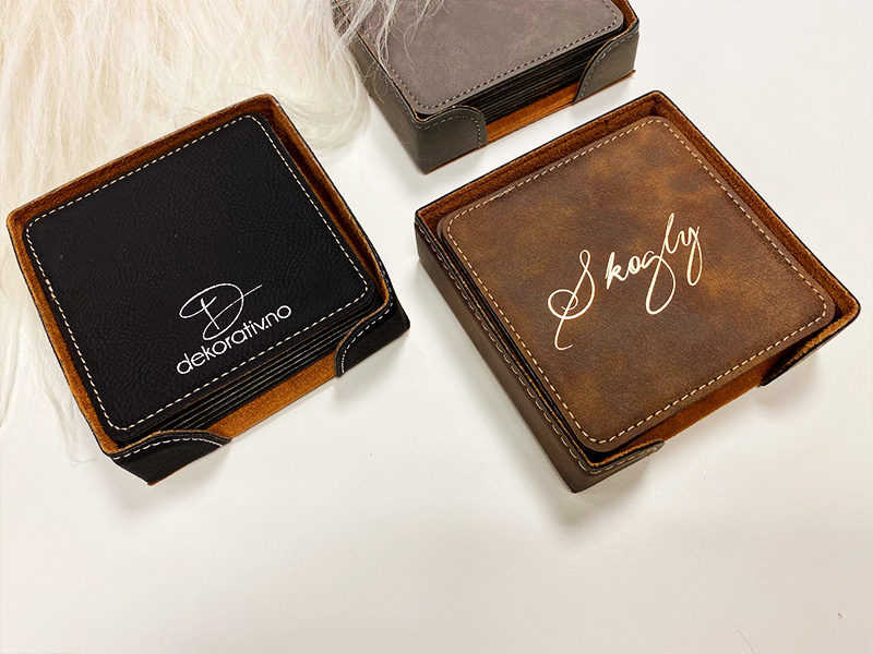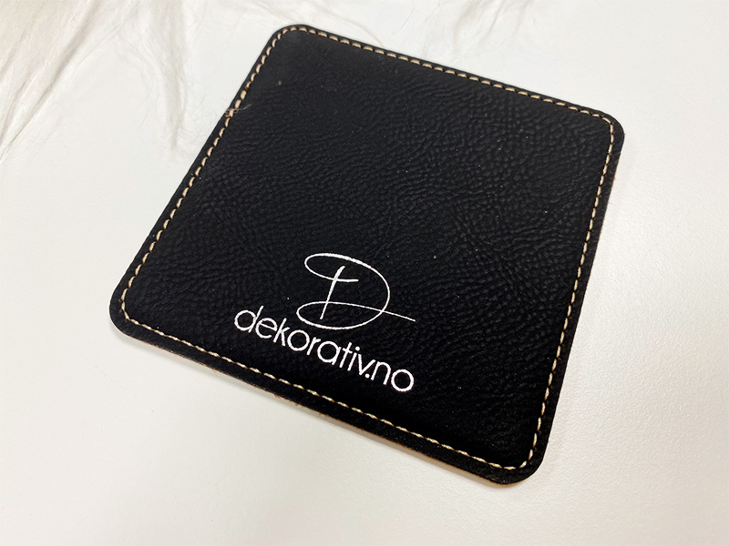 Vi trykker ønsket trykk på skinnbrikker. Slik gjør dere skinnbrikkene personlige og lar dem matche deres interiør. Dette er praktiske små brikker til kopper og glass for beskyttelse av bord og underlag. Glassbrikkene kan enkelt tilpasses interiøret eller merkes med logo, emblem, tekst, grafikk og kunst. Vi trykker deres motiv med gull og sølvtrykk. Priser på skinn-brikkene er inkl. trykk og finnes nederst på siden. Baksiden av glassbrikkene er i matt skinn slik at de ligger stødig på bordet. Dette er den perfekte prikken over i-en til den interiørbevisste. Skinnbrikkene er stilig og praktisk.