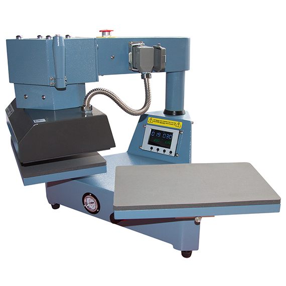 En kvalitets varmepresse med støpt aluminiumsramme produsert i England. Den er ideell for høyt volum og lav slitasje på brukeren. To knapps styresystem sikrer at operatørens hender er godt borte fra varmenplaten når maskinen er i drift. Sving hode gir deg rask og god oversikt over arbeidsflaten