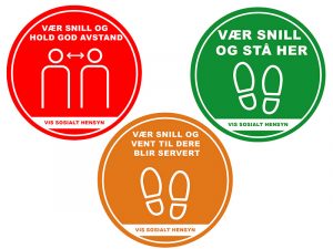 Bestill opplysningsskilt og selvklebende merkelapper både til gulv og vegg