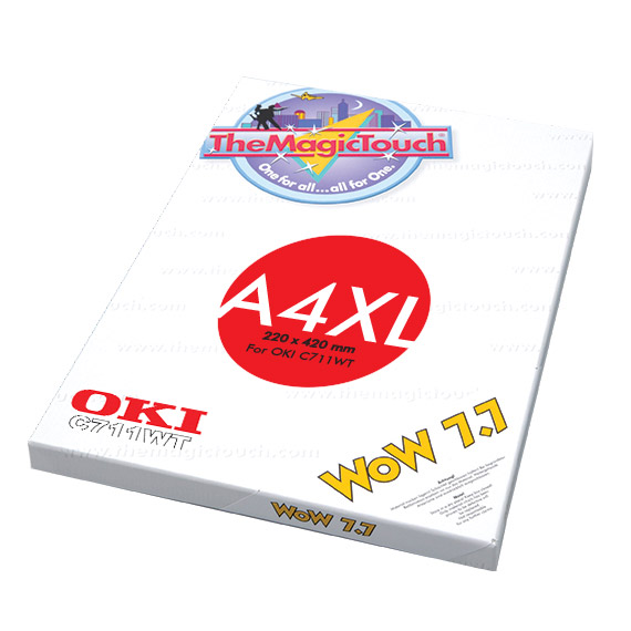 WOW 7.7 Transferpapir kommer nå i A4XL format! A4XL format er 220×420 mm spesialdesignet for OKI C711WT og SpaceControl.